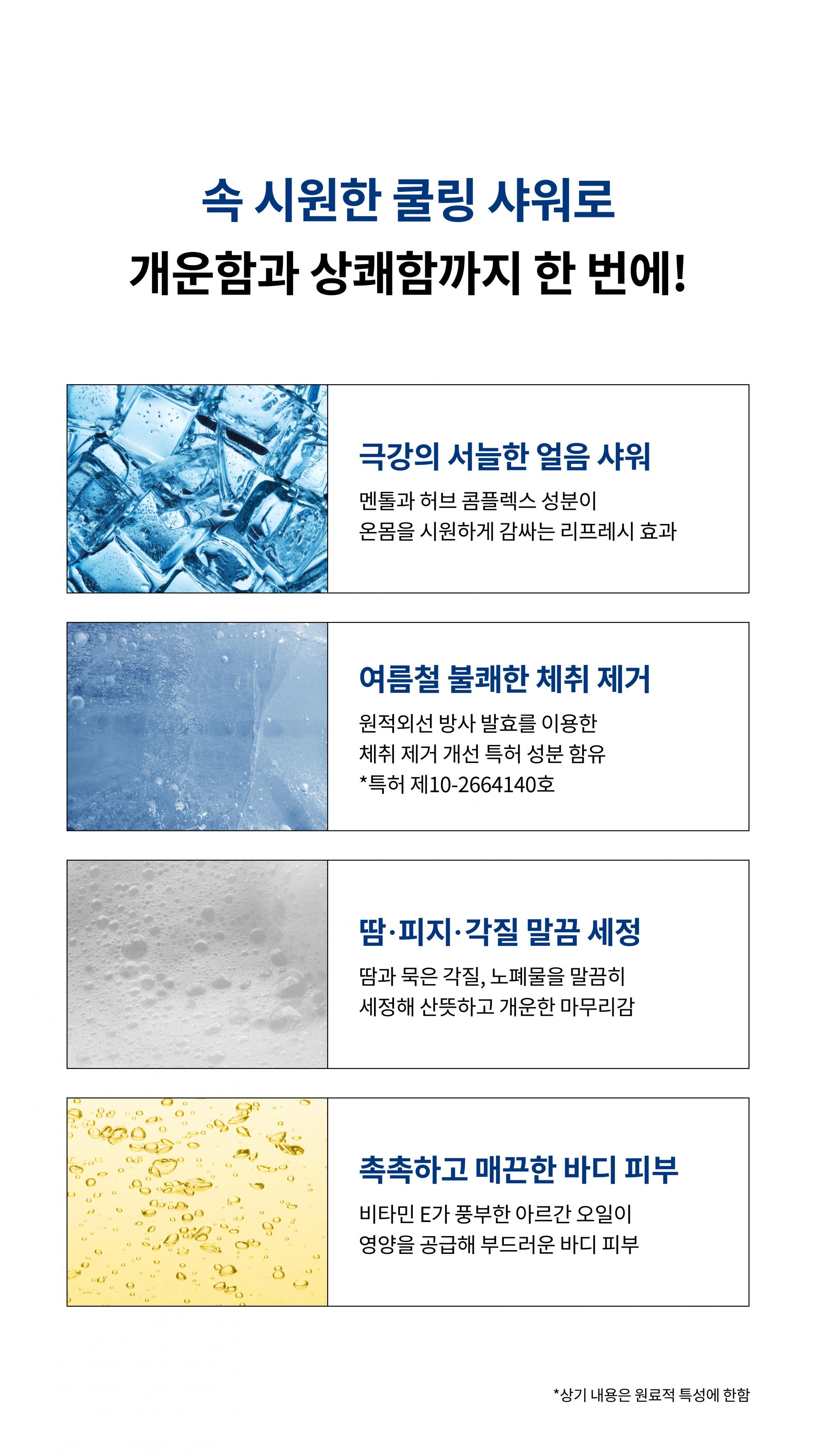 땀과 체취 걱정 없는 시원한 쿨링 샤워!