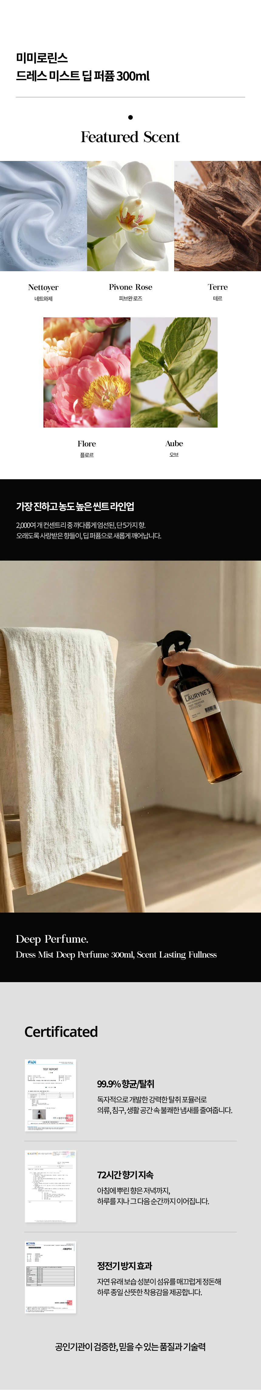 - 99% 향균/탈취, 72시간 향기 지속, 정전기 방지 효과
