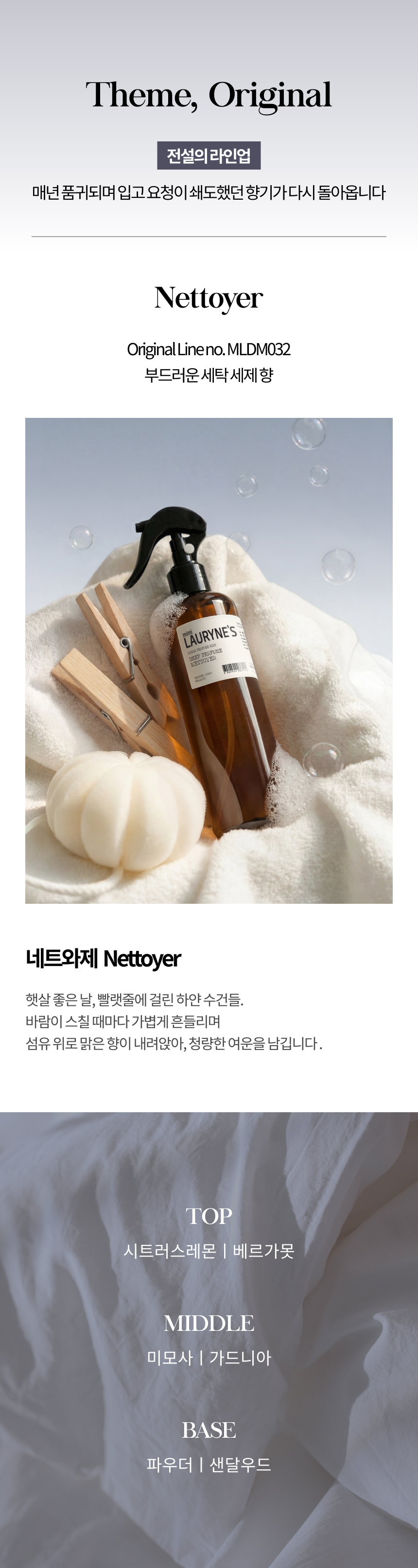섬유 위로 맑은 향이 내려앉아, 청량한 여운을 남깁니다 .