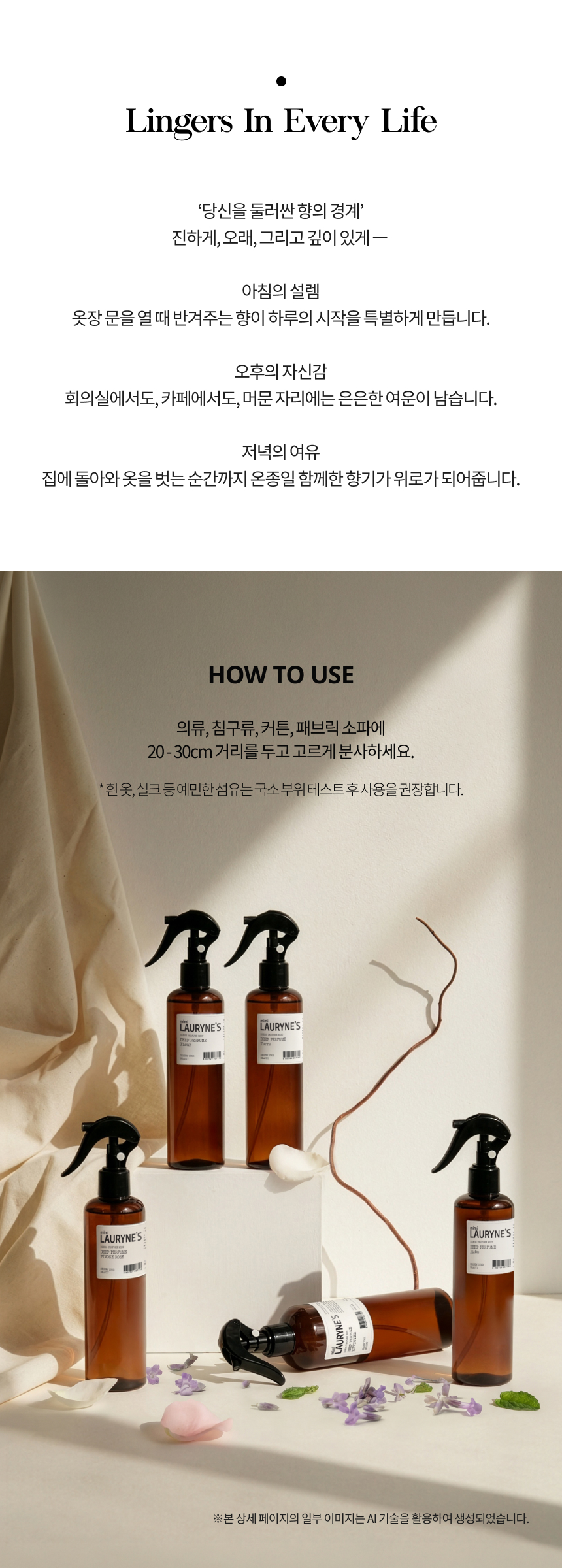 - Intensity: 깊은 발향이 섬유에 스며들어 일상을 채웁니다
