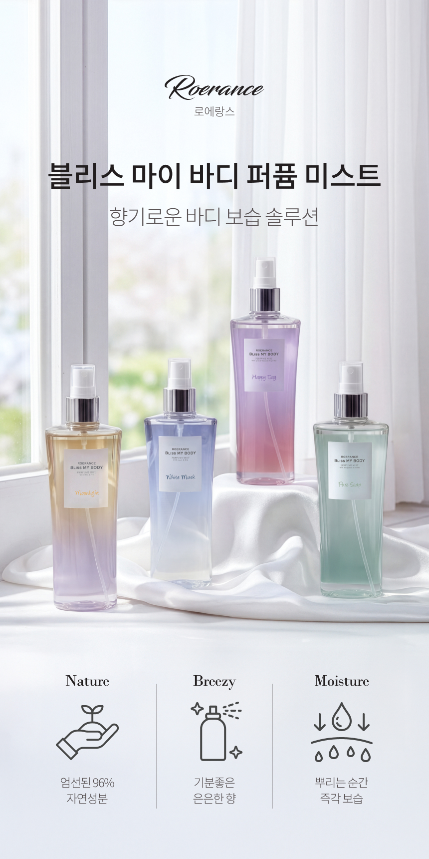 자연성분 가득한 순하고 부담없는 로에랑스 바디 미스트를 만나보세요!